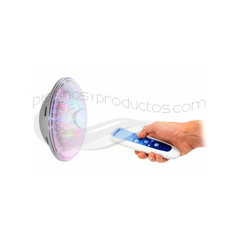 Kit de 2 lámparas Wireless LED LumiPlus PAR56 1.11 RGB de 1100 Lm. (37 W 12V AC - protección IPX8. Nueva gama de lámparas y puntos de luz RGB LED con control remoto LumiPlus Control Motion, con él podrá seleccionar directamente el cambio de 12 colores y 8 secuencias, velocidad de las secuencias, apagado y encendido de las lámparas. Nueva gama de lámparas y puntos de luz Wireless controlados mediante el control remoto LumiPlus Control Motion. El nuevo control remoto permite mediante botones seleccionar directamente el encendido/apagado, el cambio de 12 colores y 8 secuencias, y la velocidad de las secuencias. Además incorpora un sensor acelerómetro que permite también accionar colores/secuencias mediante movimientos. LumiPlus Control Motion envía directamente las órdenes a lámparas PAR56 Wireless, no es necesario instalar el receptor modulador. LumiPlus Control Motion sólo es compatible con la gama Lumiplus Wireless. Permite reemplazar las antiguas lámparas halógenas PAR56 sin