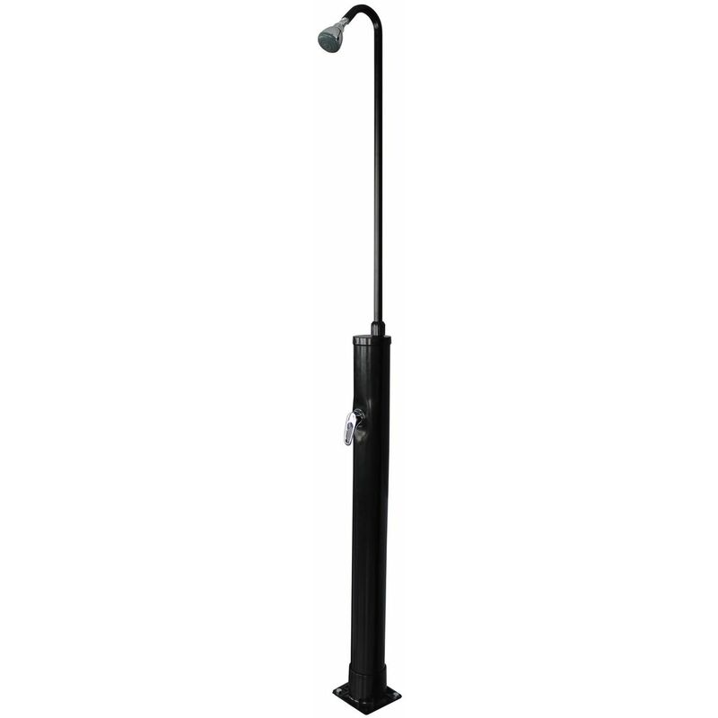 Antes y después de las sesiones de baño disfruta de una buena ducha caliente gracias a nuestro modelo solar curvo de PVC 9L. Equipado con un chorro orientable y un grifo mezclador de acero inoxidable. Puede contener hasta 9 litros de agua calentada de forma completamente ecológica por los rayos del sol. Características: - Forma de la ducha: curvada - Altura: 213 cm - Capacidad del tanque: 25L de agua - Tipo de cartucho: PVC - Color : Negro
