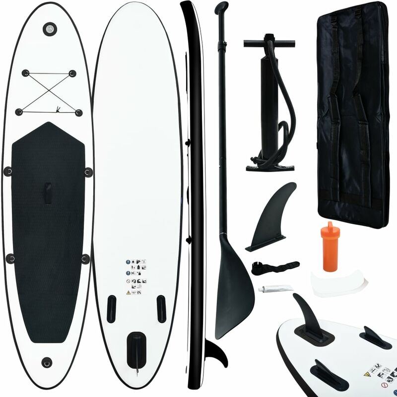 La tabla de paddle surf es ideal para el aprendizaje, el remo recreativo y la navegación de olas pequeñas, con comodidad y estabilidad. Equipada con válvulas de rosca de alta presión, la tabla se infla y se desinfla fácil y rápidamente. Las dos aletas prefijadas y la aleta extraíble son duraderas para poder resistir los esfuerzos del remo. Se incluye una práctica bolsa de transporte para transportarla de forma rápida y fácil. Esta tabla SUP ha sido diseñada con el perfecto nivel de curvatura, con el fin de mejorar la rigidez para un paseo más estable. Esta tabla se desliza sin esfuerzo sobre las aguas tranquilas y navega suavemente mientras surfea. La tabla SUP hinchable es a prueba de pinchazos y resistente a los rayos UV y soporta condiciones náuticas extremas. Ten en cuenta que ha sido concebida para adultos. Especificaciones: Color: Negro y blanco Material: EVA, aluminio Dimensiones infladas: 390 x 81 x 10 cm (largo x ancho x alto) Anchura de la quilla: 18,3 cm Longitud de los