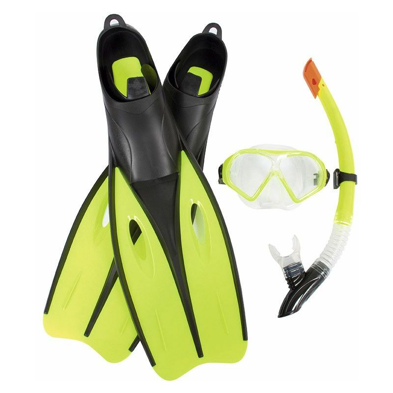 Set gafas de buceo + tubo snorkel + Bestway Dream Diver El set incluye aletas de talla 40-42, máscara con tira ajustable y tubo de snorkel con boquilla de silicona . Disponible en varios colores, el conjunto de snorkel incluye bolsa de transporte . El set gafas de buceo + tubo snorkel + Bestway Dream Diver se trata de una producto nuevo, provisto de Garantía del fabricante, Bestway . - Set gafas de buceo + tubo snorkel + Bestway Dream Diver . -Lente de gran tamaño. -Tira ajustable. -Tubo de snorkel con boquilla de silicona. - Aletas suaves y confortables (Talla EUR 40-42). -Varios colores. -Bolsa de transporte. -Garantía del fabricante, Bestway.